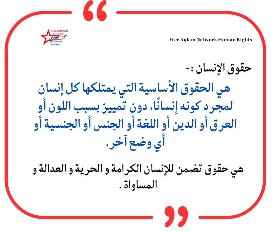 هي الحقوق الأساسية التي يمتلكها كل إنسان لمجرد كونه إنسانًا، دون تمييز بسبب اللون أو العرق أو الدين أو اللغة أو الجنس أو الجنسية أو أي وضع آخر .هي حقوق تضمن للإنسان الكرامة والحرية والعدالة والمساواة .