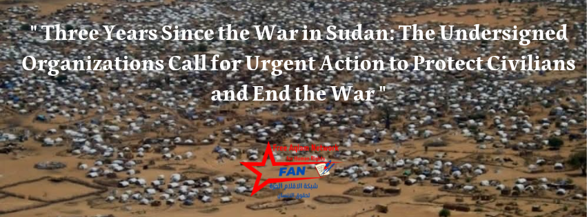 The undersigned organizations mark three years since the outbreak of war in Sudan by renewing our solidarity with the Sudanese people and calling for urgent action to protect civilians and bring this devastating conflict to an end.Since 15 April 2023, Sudan has been engulfed in a brutal war between the Sudanese Armed Forces and the Rapid Support Forces that has caused immense human suffering and driven the country into one of the gravest humanitarian and human rights crises in the world. What began as a struggle for power between armed actors has evolved into a protracted catastrophe borne overwhelmingly by civilians. Across Sudan, millions have been displaced, towns and cities have been devastated, and essential civilian infrastructure, including homes, hospitals, schools, markets, and water and electricity facilities, has been damaged, destroyed, or rendered inaccessible.For three years, civilians have faced relentless violence, insecurity, and deprivation. The conflict is marked by grave violations and abuses, including unlawful killings, extrajudicial executions, arbitrary detention, enforced disappearance, torture, conflict-related sexual violence, looting, siege tactics, and attacks on civilian objects. Entire communities have been uprooted, Partially or entirely, as occurred with the Masalit community in El Geneina between June and November 2023, and with Zaghawa, Tunjur, Berti, and other communities in North Darfur during the events surrounding the fall of El Fasher in late October 2025, families have been torn apart, and vast numbers of people have been left without adequate access to food, water, shelter, medical care, or protection. Women, children, older persons, persons with disabilities, human rights defenders, journalists, lawyers, and humanitarian workers have faced particular risks amid the ongoing conflict.The war has also deepened ethnic violence and collective punishment in several parts of the country, as documented in our specialized, periodic, and urgent reports especially in Darfur and other heavily affected regions. Civilians have been targeted not only as individuals trapped in conflict, but also as communities exposed to persecution, retaliation, and identity-based violence. The continued commission of such violations, in a context of near-total impunity, has compounded the suffering of victims and further undermined prospects for peacebuilding, justice, and social cohesion in Sudan.Beyond the immediate violence, the war resulted in the destruction of Sudan’s institutional and social fabric. Civilian life has been shattered by the collapse of basic services, the breakdown of governance structures, the erosion of the rule of law, and the shrinking of civic space. Humanitarian operations have been obstructed, local responders have operated under constant threat, and many civilians remain trapped in areas affected by fighting, siege, or deliberate restrictions on movement and aid. The longer the conflict continues, the deeper the damage to Sudan’s future.The scale of international and regional failure in responding to this crisis remains deeply alarming. Despite the magnitude of the suffering, efforts to protect civilians and halt the war have remained gravely inadequate. Expressions of concern have not translated into the level of action required to stop ongoing atrocities, ensure meaningful civilian protection, or alleviate the humanitarian disaster. The continued flow of political, financial, and military support that sustains the conflict must also be urgently addressed. Any serious effort to end the war must include concrete measures to stop enabling the parties responsible for prolonging civilian suffering.At the same time, the undersigned organizations recognize the extraordinary courage and resilience shown by Sudanese civilians throughout the past three years. Across the country, local communities, emergency response initiatives, medical workers, volunteers, women-led groups, youth networks, and civil society actors have continued to save lives, support displaced populations and refugees, document violations, and provide assistance under extreme and dangerous conditions. Their efforts have sustained communities in the absence of adequate national and international protection, and they must be recognized and meaningfully supported.Three years into this war, the priority must be clear: protecting civilians and ending the war. This requires an immediate cessation of attacks against civilians and civilian objects, genuine and unhindered humanitarian access, and concrete steps toward a just and sustainable resolution that centers the rights, dignity, and aspirations of the Sudanese people. It also requires stronger action by the United Nations, the African Union, and the wider international community to press for civilian protection, support accountability efforts, and to stop the armed conflict.The undersigned organizations therefore call on all parties to the conflict to immediately cease attacks on civilians, end violations of international human rights law and international humanitarian law, and take urgent steps toward ending hostilities. We call on regional and international actors to intensify efforts to protect civilians, support efforts to document violations and advocate for accountability, ensure safe and unhindered humanitarian access across Sudan, and support a credible civilian-led path toward peace. We further stress that there can be no durable peace without justice, and no meaningful future for Sudan without accountability for the grave violations and abuses committed over the past three years.We stand with the people of Sudan and renew our call for urgent, principled, and sustained action. Sudanese civilians have already endured three years of war, devastation, displacement, and loss. They cannot be left to endure more delay, more impunity, and more abandonment. The war must end. Civilians must be protected.